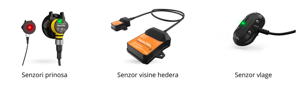 Sistem za praćenje žetve FarmTRX sastoji se od elektronske jedinice za monitoring prinosa, senzora vlage i senzora visine hedera, a opcioni su u zavisnosti da li kombajn već ima navigacioni uređaj ili ne, antena i displej. Ovo univerzalno rešenje može se instalirati na bilo koji  model kombajna i obuhvata sve potrebne hardverske i softverske komponente potrebne za precizno mapiranja prinosa. U radu koristi tehnologiju optičkih senzora za merenje zapremine zrna i satelitski izvor korekcija  bez potrebe za podešavanjem ili konfiguracijom. Senzor vlage omogućava praćenje vlažnosti zrna u pokretu. Instalira se na vrata otvora za čišćenje, u podnožju elevatora za čisto zrno, na mestu gde je protok zrna konstantan. Senzor vlage beleži vrednosti kapacitivnosti zrna i vlažnost zrna uživo kao i prosečne vrednosti koje poljoprivrednik može da vidi preko mobilne aplikacije.