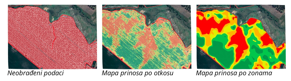 Prinos je mera koja ukazuje da li je proizvodna godina bila uspešna ili ne. Ako pričamo o prosečnom prinosu, on kao i njegov naziv daje prosečnu ocenu na osnovu  koje ne možemo utvrditi da li postoje razlike u prinosu u različitim delovima parcele. Ovi podaci ne samo da daju podatke o prinosu za određene lokacije na parceli, već predstavljaju osnovu za uočavanje različitih proizvodnih uslova na polju. Tako na primer mogu pokazati na deo parcele gde je ulaganje u proizvodnju bilo višestruko veće nego vrednost prinosa. I upravo se ovi podaci mogu uzeti kao početni korak u daljoj analizi parcele, odnosno optimizaciji proizvodnje.