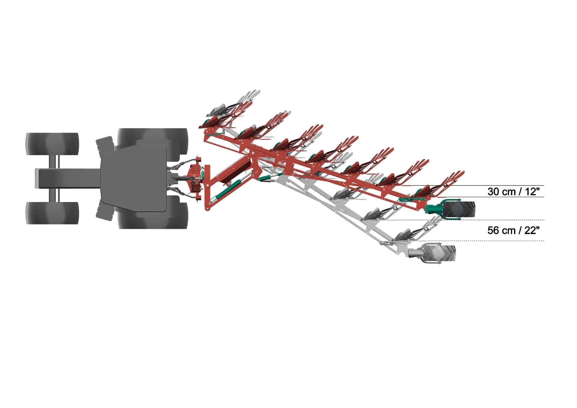 Prva brazda-prvo plužno telo se može podesiti nezavisno od radne širine pluga. Prilikom aktiviranja Variomat®, širina prve brazde zadržava svoju postavku u odnosu na radnu širinu pluga.